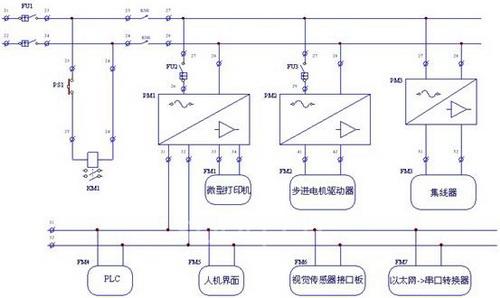 開發(fā)的火花塞檢測(cè)系統(tǒng)由松下作為控制核心,完成整個(gè)系統(tǒng)的運(yùn)動(dòng)控制,數(shù)據(jù)處理,數(shù)據(jù)打印等工作,另外由視覺系統(tǒng)進(jìn)行數(shù)據(jù)檢測(cè),進(jìn)而完成整個(gè)系統(tǒng)的功能任務(wù)。