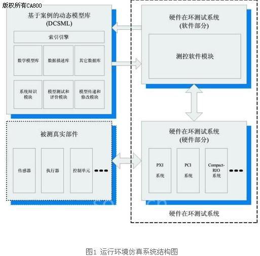 運(yùn)行環(huán)境仿真系統(tǒng)具有兩個(gè)重要的組成部分:動(dòng)態(tài)案例仿真模型庫(kù)和基于虛擬儀器的硬件在環(huán)測(cè)試系統(tǒng)。前者主要用于擴(kuò)展真實(shí)部件和系統(tǒng)的數(shù)學(xué)描述范圍,采用案例推理方式合理分類;后者主要針對(duì)如何通過使用數(shù)學(xué)描述方法實(shí)現(xiàn)實(shí)際的測(cè)控系統(tǒng),以減少開發(fā)難度、費(fèi)用和其他投資。這兩部分具有非常密切的關(guān)系,但兩者是相對(duì)獨(dú)立的系統(tǒng)。運(yùn)行環(huán)境仿真系統(tǒng)為這兩者搭建了一座橋梁,從而使真實(shí)對(duì)象與虛擬運(yùn)行環(huán)境中的仿真對(duì)象緊密結(jié)合形成更高層次的測(cè)控系統(tǒng)。