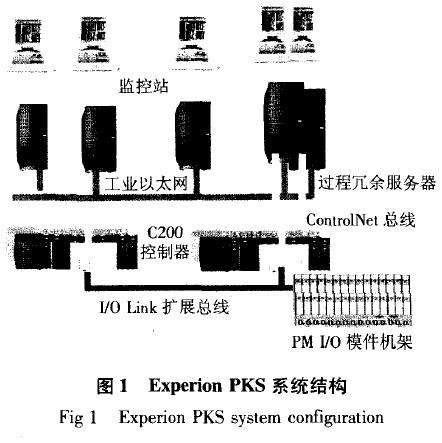 津西鋼鐵集團(tuán)制氧項(xiàng)目包括機(jī)組部分、預(yù)冷系統(tǒng)、純化系統(tǒng)、精餾系統(tǒng)、氧壓機(jī)、氮壓機(jī)和水系統(tǒng),采用DCS進(jìn)行監(jiān)控,數(shù)字量、模擬量信號(hào)共計(jì)600多點(diǎn),調(diào)節(jié)回路60余個(gè)。這套裝置采用了美國(guó)Honeywell公司的Experion PKS控制系統(tǒng),系統(tǒng)構(gòu)成如圖1所示。其中上位監(jiān)控站共五臺(tái),采用冗余服務(wù)器結(jié)構(gòu),保證后臺(tái)實(shí)時(shí)數(shù)據(jù)的管理和交換,服務(wù)器通過(guò)ControlNet工業(yè)總線與DCS相連,監(jiān)控站通過(guò)工業(yè)以太網(wǎng)訪問(wèn)冗余服務(wù)器數(shù)據(jù)。DCS采用兩個(gè)相互冗余的C200控制器,并且各自安裝在相互獨(dú)立的機(jī)架上,具有較高的容錯(cuò)性。冗余模件RM卡件自動(dòng)同步,保證兩個(gè)DCS控制器的數(shù)據(jù)同步,當(dāng)一臺(tái)控制器故障時(shí),另一臺(tái)控制器能夠無(wú)縫接管控制任務(wù)。系統(tǒng)還配置了故障時(shí)進(jìn)行無(wú)間隔自動(dòng)切換的冗余電源系統(tǒng),保證了控制系統(tǒng)的可靠供電。本項(xiàng)目中數(shù)據(jù)采集模件的所有信號(hào)輸入/輸出板卡均為智能型PM I/O過(guò)程處理模件,數(shù)據(jù)采集與輸出處理均在前端FTA集成端子板完成,F(xiàn)TA集成端子板還具有豐富的在線診斷報(bào)警功能。