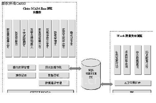 計(jì)算機(jī)硬件采用惠普公司HP PC和大屏幕的LCD顯示器,軟件操作系統(tǒng)使用微軟公司W(wǎng)IN2000,應(yīng)用控制軟件開發(fā)平臺采用悉雅特公司CIETECT SCADA ,數(shù)據(jù)庫使用微軟公司MS SQL 2000,數(shù)據(jù)發(fā)布服務(wù)程序使用微軟公司 MS ASP+SQL SERVER技術(shù);通訊網(wǎng)絡(luò)使用100M/10M工業(yè)以太網(wǎng),通訊協(xié)議使用符合國際和國家標(biāo)準(zhǔn)的Modbus TCP/IP 。