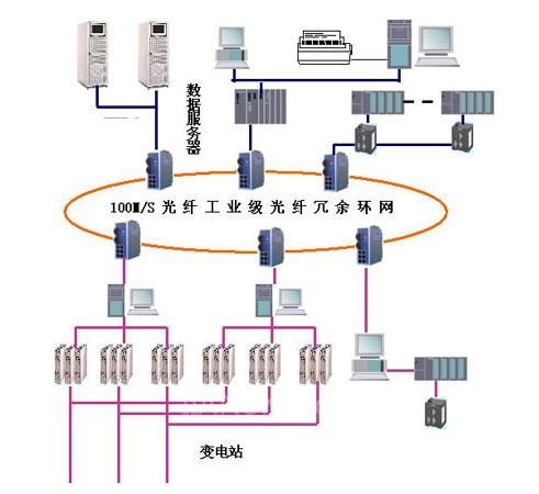 ●在本方案中,采用了2臺前置(采集)處理機,2臺系統(tǒng)(數(shù)據(jù))服務(wù)器組成雙機熱備的SCADA系統(tǒng); 2臺調(diào)度員工作站;1臺微機組成EMS能量管理工作站;1微機組成DTS調(diào)度員工作站;1臺工程師維護站;1臺激光打印機。SCADA可實現(xiàn)與廠站RTU的實時通信。設(shè)置網(wǎng)關(guān)服務(wù)器與公司的管理網(wǎng)聯(lián)網(wǎng)并實現(xiàn)遠程診斷。本方案采用上海兆越通訊技術(shù)有限公司工業(yè)級光纖冗余以太網(wǎng)結(jié)構(gòu),前置(采集)處理機、系統(tǒng)服務(wù)器、調(diào)度員工作站、工程師站、EMS工作站、DTS工作站都工作在冗余網(wǎng)絡(luò)中。當(dāng)一路網(wǎng)絡(luò)出現(xiàn)故障時,該設(shè)備會啟動冗余功能確保通信可以通過另一條網(wǎng)絡(luò)完成。
