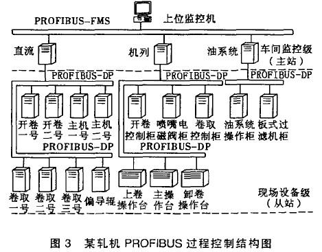 圖3所示為某軋機(jī)過(guò)程控制中的PROFIBUS網(wǎng)絡(luò)結(jié)構(gòu)。