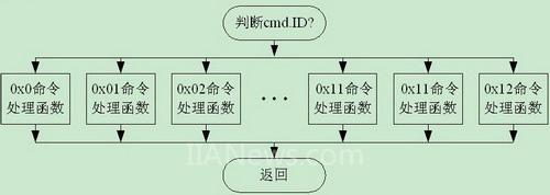 圖3中各命令字的處理流程具有典型性,圖2中其他命令字的處理流程均可以在圖3中找到相對應(yīng)的一類,因而其實(shí)現(xiàn)過程變得簡單、直觀,模塊化程度很高。