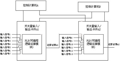 如圖3所示,在正常情況下,各開關(guān)量輸入/輸出卡件受上位計(jì)算機(jī)控制,而上位計(jì)算機(jī)采用雙主機(jī)運(yùn)行,一臺主控,一臺備用,主控計(jì)算機(jī)故障時,備用計(jì)算機(jī)自動切到控制方式,因此,提高了系統(tǒng)的可靠性。而當(dāng)兩臺控制計(jì)算機(jī)均發(fā)生故障時,由于各開關(guān)量輸入/輸出卡件上運(yùn)行的PLB(可編程邏輯運(yùn)算模塊)可不依賴上位計(jì)算機(jī)獨(dú)立運(yùn)行,此時雖然不能對邏輯進(jìn)行修改,但現(xiàn)有的保護(hù)功能仍可正常實(shí)現(xiàn),不會造成保護(hù)拒動。采用此方案的關(guān)鍵是,邏輯運(yùn)算程序必須能在輸入/輸出卡件上獨(dú)立運(yùn)行。