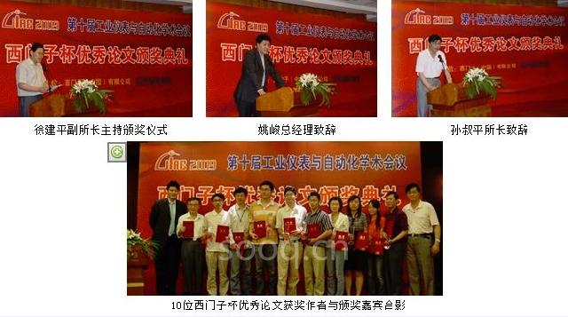 6月2日下午18:00,近百名代表歡聚在上海光大國(guó)際大酒店光韻一號(hào)廳,在中國(guó)儀器儀表學(xué)會(huì)可靠性工程分會(huì)秘書(shū)長(zhǎng)、上海儀器儀表自控系統(tǒng)檢驗(yàn)測(cè)試所所長(zhǎng)徐建平教授的主持下舉行了隆重的頒獎(jiǎng)典禮。西門(mén)子工廠(chǎng)自動(dòng)化有限公司總經(jīng)理姚峻先生和上海工業(yè)自動(dòng)化儀表研究所所長(zhǎng)孫叔平教授先后致詞,祝賀第九屆工業(yè)儀表與自動(dòng)化學(xué)術(shù)會(huì)議圓滿(mǎn)成功,并為獲得“第十屆工業(yè)儀表與自動(dòng)化學(xué)術(shù)會(huì)議西門(mén)子杯優(yōu)秀論文”的10位論文作者頒發(fā)了獎(jiǎng)杯和證書(shū)。