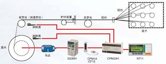 考慮到客戶的成本,我們提供了微型PLC CPM2AH+變頻器3G3MV+文本顯示器NT11的高性價(jià)比控制方案。PLC與變頻器通過(guò)RS485方式實(shí)現(xiàn)Modbus串行通訊;CPM2AH通過(guò)編程實(shí)現(xiàn)帶小數(shù)點(diǎn)的數(shù)據(jù)運(yùn)算,通過(guò)高速計(jì)數(shù)口進(jìn)行脈沖計(jì)數(shù),使控制精度有明顯的提高,織軸卷繞張力從定性控制發(fā)展到定量控制,從而自動(dòng)控制內(nèi)外圈張力,實(shí)現(xiàn)理想的內(nèi)緊外松。操用簡(jiǎn)單方便的文本顯示器NT11用以完成參數(shù)設(shè)置、狀態(tài)顯示和密碼保護(hù)功能。