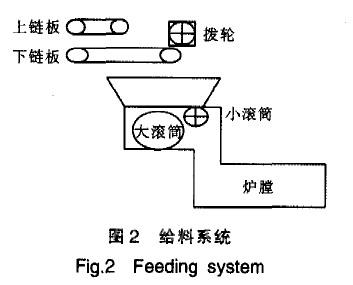 垃圾給料的主要設(shè)備有大滾筒、小滾筒、上鏈板、下鏈板、撥輪(如圖2所示)。其啟動(dòng)順序?yàn)榇鬂L筒、小滾筒、下鏈板、撥輪、上鏈板,它的停順序正好倒過(guò)來(lái)。