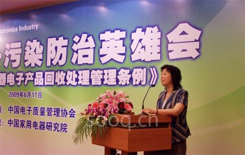 2009年6月17日,由中國電子質(zhì)量管理協(xié)會主辦的2009電子污染防治英雄會——聚焦《廢棄電器電子產(chǎn)品回收處理管理條例》在北京舉行。