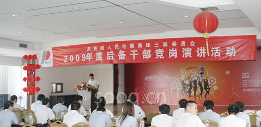 本網(wǎng)訊 6月21日,人民電器集團(tuán)40多名團(tuán)員青年,參加集團(tuán)團(tuán)委在多功能大廳舉行的2009年度后備團(tuán)干競崗演講活動。這種變傳統(tǒng)的“伯樂相馬”為“賽場選馬”,以提高集團(tuán)團(tuán)干選拔任用工作的公正性和科學(xué)性,為進(jìn)一步加強(qiáng)集團(tuán)后備共青團(tuán)干部隊伍建設(shè)的舉措,受到集團(tuán)董事長鄭元豹高度肯定。