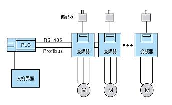 用于位置反饋的編碼器信號直接送到變頻器進(jìn)行處理,PLC和人機(jī)界面組成的上位機(jī)系統(tǒng)通過網(wǎng)絡(luò)對變頻器進(jìn)行位置的設(shè)定和當(dāng)前位置的顯示。