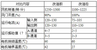 高溫風(fēng)機(jī)變頻改造前后用電量對(duì)比表