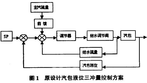在HS2000DCS控制點(diǎn)的組態(tài)中。運(yùn)用RPV點(diǎn)中的表達(dá)式及折線化算法,很容易實(shí)現(xiàn)以上補(bǔ)償關(guān)系。原設(shè)計(jì)所給出的汽包液位三沖量控制方案如圖1所示。