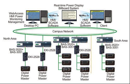 該學校采用基于網(wǎng)絡的電力監(jiān)測管理系統(tǒng),包含研華WebAccess軟件和BAS-3520 DDC。系統(tǒng)的運行不僅幫助大學、學校工作人員和學生進行電能的管理,同時讓我們可以更高效的使用能源,節(jié)能的概念深入人心,我們才會擁有更“綠色”的未來。