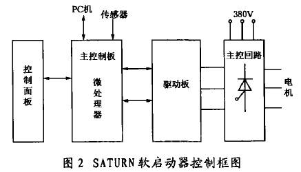 SATURN通用三相異步電機(jī)軟啟動(dòng)器是新一代電機(jī)的節(jié)能型控制產(chǎn)品,基于微處理器數(shù)字控制技術(shù)通過(guò)其內(nèi)置的控制軟件,對(duì)電機(jī)的起動(dòng)、運(yùn)行、停車和保護(hù)進(jìn)行控制,如圖2所示。