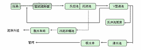 隨著城市現(xiàn)代化建設(shè)的發(fā)展,環(huán)境保護(hù)、生活用水的要求不斷提高。以前水廠的人工、半自動水廠控制系統(tǒng)已經(jīng)遠(yuǎn)遠(yuǎn)不能滿足現(xiàn)代化生活和企業(yè)運作的需要,因此先進(jìn)的計算機控制技術(shù)應(yīng)運而生。通過先進(jìn)的自動控制系統(tǒng),可實現(xiàn)對水廠制水、污水處理、水軟化、送配水等工程運作的監(jiān)視和控制。江西省新余市第四水廠于2008年9月建成通水,第一期規(guī)模為15萬噸/天。第四水廠采用圖1所示的工藝流程,主要包括取水泵房、加礬加氯間、V型濾池站和送水泵房等控制站。該水廠實現(xiàn)了自動控制和系統(tǒng)主要參數(shù)的在線監(jiān)測;同時為節(jié)約水資源,保護(hù)水體不受污染,對濾池反沖洗水進(jìn)行回收,二期擬對污泥進(jìn)行濃縮處理。