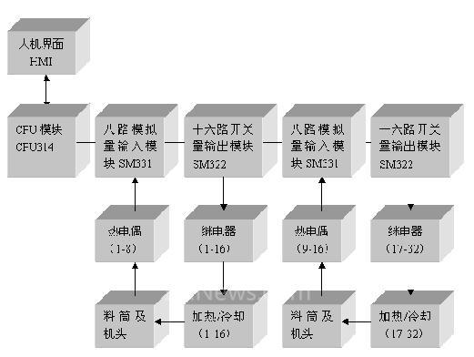 圖1. PLC集中控制溫控系統(tǒng)硬件配置