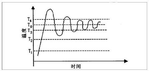 其中T1、T2、T3、T4可以通過組合參數(shù)的設(shè)定配置給模塊,也可以由模塊來自動的整定,這種控制策略不僅考慮了實測溫度和設(shè)定溫度的偏差,而且考慮了實測溫度的變化趨勢,可減少超調(diào)和波動,具有很靈活的自適應(yīng)效果。實際的溫度曲線如圖4示。