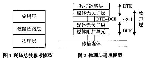 IEC61158—2給出了現(xiàn)場(chǎng)總線物理層通用模型,可用圖2示可表示?,F(xiàn)場(chǎng)總線通信裝置是由數(shù)據(jù)終端設(shè)備(DTE)和數(shù)據(jù)端接設(shè)備(DCE)組成。從圖2可看出,現(xiàn)場(chǎng)總線的物理層包含了媒體相關(guān)子層與媒體無(wú)關(guān)子層兩部分。