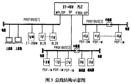 在煉鐵高爐自動(dòng)化控制系統(tǒng)中,分為槽下配料和爐頂加料部份,槽下系統(tǒng)共25個(gè)倉(cāng)、19個(gè)斗,共計(jì)閥門31個(gè),爐頂12個(gè)閥,卷?yè)P(yáng)電機(jī)、探尺設(shè)備配有編碼器。在電氣設(shè)計(jì)方而,分布區(qū)域廣、閥門多、煤氣區(qū)域易燃易爆的特點(diǎn)不容忽視,兇此,我們采用各輸入輸出點(diǎn)(包括數(shù)字量、模擬量)進(jìn)入站點(diǎn)模塊,通過(guò)一根總線傳人_豐控室PLC,以此控制各閥門及電機(jī)動(dòng)作。本文以現(xiàn)場(chǎng)總線的角度出發(fā),結(jié)合采用德國(guó)西門子PIC系統(tǒng)和圖爾克Prnfibus—DP工業(yè)現(xiàn)場(chǎng)總線技術(shù),描述高爐自動(dòng)化系統(tǒng)的實(shí)現(xiàn),并對(duì)當(dāng)前現(xiàn)場(chǎng)總線故障診斷的敏感問(wèn)題提出了一些解決方案。