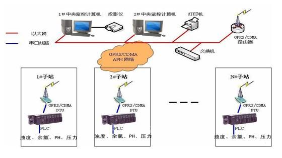 原來每個(gè)自來水供水企業(yè),都會在自己的供水管網(wǎng)上設(shè)置一套水質(zhì)在線監(jiān)測系統(tǒng)即:在供水主干管網(wǎng)上安裝水質(zhì)、水壓、水量等在線測報(bào)設(shè)備,并通過無線傳輸網(wǎng)絡(luò),將實(shí)時(shí)采集到水質(zhì)、水壓等動態(tài)數(shù)據(jù)傳輸?shù)剿|(zhì)督察系統(tǒng),以強(qiáng)化企業(yè)&政府對城市供水水質(zhì)的監(jiān)督管理,提高行政管理效率,構(gòu)建社會公眾了解企業(yè)供水水質(zhì)狀況的暢通渠道。傳統(tǒng)這套無線分散式數(shù)據(jù)采集系統(tǒng)是如何實(shí)現(xiàn)的呢?