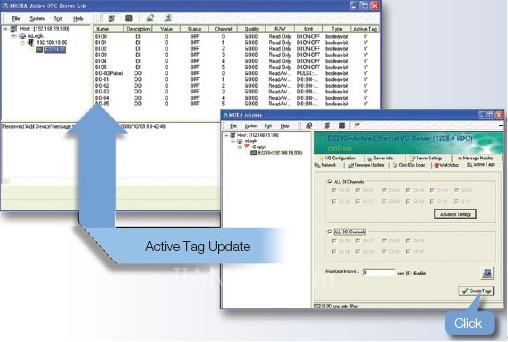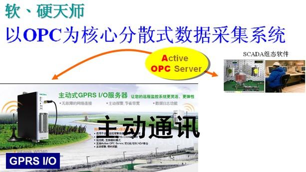 使用者通過W5340的配置軟件(ioAdmin)只需用鼠標(biāo)點(diǎn)擊幾下,五秒鐘內(nèi)即可以將I/O全部通道數(shù)據(jù)實(shí)時(shí)的更新至Active OPC Server,而SCADA則通過輪詢(polling)Active OPC的方式,獲取想要的實(shí)時(shí)數(shù)據(jù),換句話說,MOXA提供了一套完整的以O(shè)PC為核心的分散式數(shù)據(jù)采集系統(tǒng)。