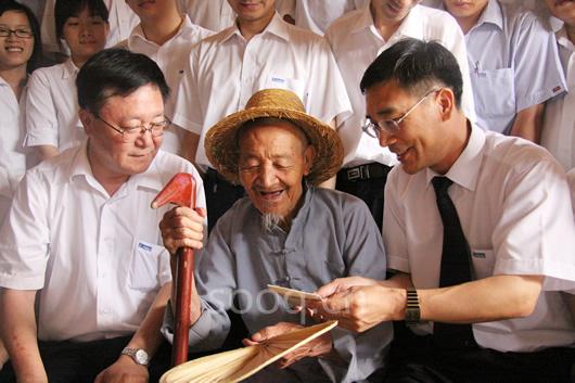 永嘉縣五尺鄉(xiāng)五尺村,曾是中國(guó)工農(nóng)紅軍第十三軍的搖籃,在這塊英雄的土地上,許多革命先烈為了新中國(guó)的成立,不惜拋頭顱、灑熱血。因此,每逢黨的生日來臨,葉玉森總經(jīng)理總要率領(lǐng)人民電器的黨員踏上這塊英雄的土地,看望健在的老紅軍們。這次,葉玉森總經(jīng)理率集團(tuán)辦公室主任黃虹賓、集團(tuán)總工程師吳愛新、浙江分公司常務(wù)副總經(jīng)理朱志金、浙江分公司辦公室主任劉忠杰等70多名黨員、預(yù)備黨員,特地來到了紅十三軍唯一健在的老紅軍戰(zhàn)士胡玉炊的家。握著老紅軍的手,葉玉森總經(jīng)理遞上了1000元慰問金,代表人民電器真誠(chéng)祝愿他健康長(zhǎng)壽。已有101歲的老紅軍胡玉炊,耳朵雖然不能象年青人一樣好使,但看著大家一個(gè)個(gè)圍在他的身邊,他慈祥地笑了。他一邊和大家觀看反映當(dāng)年紅十三軍如何在槍林彈雨中不斷成長(zhǎng)的紀(jì)錄片,一邊說起了他曾在1929年那一場(chǎng)戰(zhàn)斗中大腿受傷的經(jīng)歷。