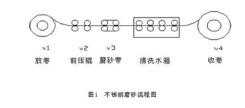 在不銹鋼的加工過程中,它的磨砂和清洗工藝是否先進對產(chǎn)品品質(zhì)起著決定性的作用,系統(tǒng)一般由以下部分組成:放卷、收卷由兩臺5.5KW電機驅(qū)動,壓輥、磨砂帶各由1臺2.2KW電機驅(qū)動,四個動力點的速度都由同步控制器輸出0-10V信號,控制變頻器同步運行。不銹鋼板從放卷電機開卷,經(jīng)前整壓輥引入進入生產(chǎn)線,通過磨砂帶的高速旋轉(zhuǎn)打磨拋光,進入到清洗水箱進行液體噴射清潔、高壓風機干燥處理后,由收卷電機進行收卷、包裝。