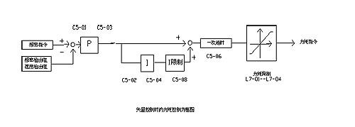 a、力矩限制功能:在PG矢量控制方式下,力矩限制功能的典型應(yīng)用是開環(huán)力矩限制收(放)卷功能。力矩指令可以由多功能模擬量輸入端子、ModBus通信卡修改L7組相應(yīng)參數(shù)或通過操作鍵盤修改L7組相關(guān)參數(shù)等輸入信號任意設(shè)定。當不想在負載上施加一定量以上的力矩及不想發(fā)生一定量以上的再生能量時,可以使用力矩限制功能。力矩限制的精度:在輸出頻率10Hz以上時,為±5%,10Hz以下時精度較低。電機輸出力矩達到力矩限制值時,力矩控制優(yōu)先,電機的轉(zhuǎn)速控制和補償都無效。應(yīng)該注意的是會出現(xiàn)加減速時間增加及轉(zhuǎn)速降低的情況,而轉(zhuǎn)速降低正是收卷時所需要的特性。矢量控制時的速度(ASR)是把速度指令和速度檢出值(PG的反饋或者速度運算值的偏差)調(diào)為零,來控制力矩指令。