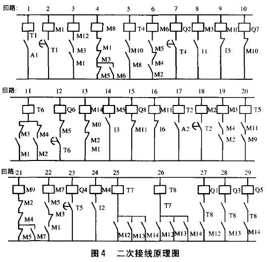 下面分析1ZK合閘的過程:由于1zK在分位,1zK常開點在分位,所以I1在分位一M3線圈無電,M3常閉點閉合;3ZK分閘后,I3在分位一M5線圈無電,M5常閉點閉合,前面分析過M1常閉點閉合,這樣M1、M3、M5常閉點都閉合一回路4中M8線圈受電,M8常開點閉合;由于1ZK沒有脫扣報警一I5常閉點閉合一回路9中M10線圈帶電,M10常開點閉合,這樣M8、M10常開點閉合一回路5中T4線圈受電,T4常開點延時1S閉合一回路7中Q2受電一控制1ZK合上。