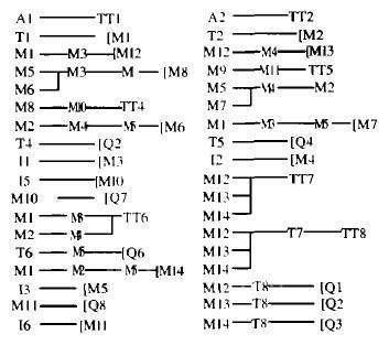 分析3ZK合閘程序控制過程:由于上面分析過M1常開點為合位.而1ZK分開后其常開點斷開,I1斷開一回路8中M3線圈失電,M3常閉點合上,這樣M1常開點閉合、M3常閉點閉合一回路11中T6線圈受電,T6常開點延時1S閉合;此前3ZK狀態(tài)為分位,所以3zK常開點為斷開狀態(tài),I3斷開,所以此時回路14中M5線圈無電,M5常閉點閉合;這樣M5常閉點閉合、T6常開點延時1S閉合一回路12中輸出端Q6受電,Q6常開點閉合一控制3ZK合閘,所以從1ZK分開到3ZK合上,除去非時間繼電器的固有動作時間和3zK開關(guān)固有合閘時間,共需1S。