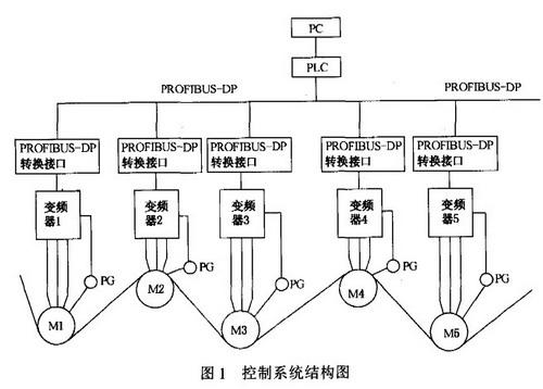 為了在造紙機高速運行狀態(tài)(600 m/min以上)下對紙機各傳動點進行同步控制和負荷控制,通常需要采用PROFIBUS-DP現(xiàn)場總線的多電機同步傳動控制系統(tǒng),解決多電機控制的同步性以及信號通訊的實時性、快速性和高精度性。