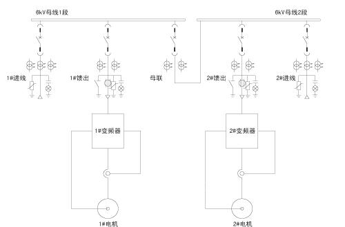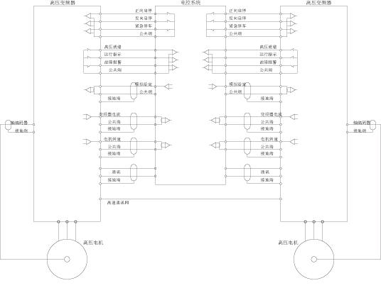 更新用戶現(xiàn)場的高低壓配電系統(tǒng),采用PLC電控系統(tǒng),采用高壓變頻器拖動系統(tǒng),更換電機(jī)和減速機(jī)。