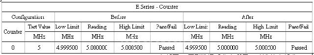 對(duì)于5MHz頻率準(zhǔn)確度的校準(zhǔn),通過(guò)頻率計(jì)直接測(cè)量。