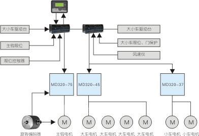 大車電機(jī)為8極電機(jī)-7.5KW,大車變頻器型號(hào)為MD320T-45KW;