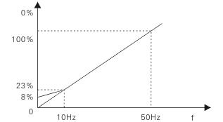 大小車因?yàn)槭且煌隙噙\(yùn)行,控制方式應(yīng)選為 U/F控制。適當(dāng)?shù)靥岣咧蓄l電壓可以改善低頻特性,提高啟動(dòng)轉(zhuǎn)矩;提高零頻電壓可以加大直流強(qiáng)勵(lì)磁,可以有效改善大小車的啟動(dòng)特性。其曲線參見下圖: