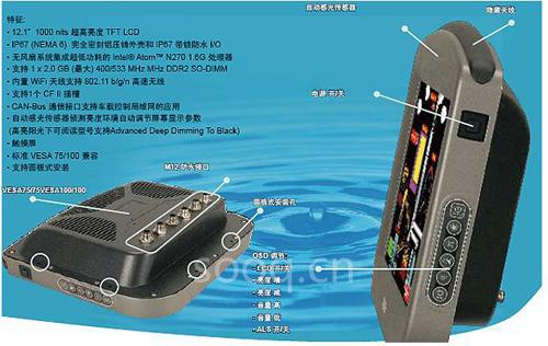 威強"大力水手"SAILOR-12A: 12.1" 整機IP67 超高亮度平板電腦基于凌動平臺