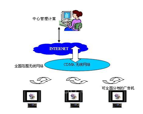 系統(tǒng)包括3部分:CDMA無線廣告機,中心管理軟件,無線傳輸通路。