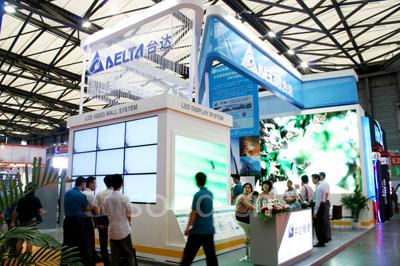顯示產(chǎn)品鮮麗的色彩、高亮度的顯示、綠色環(huán)保的性能吸引了來(lái)自國(guó)內(nèi)外觀眾的駐足。為了更好地展示當(dāng)今LED的前沿技術(shù)和先進(jìn)產(chǎn)品,工程師以中達(dá)LED為例,進(jìn)行了詳細(xì)的解說(shuō)和介紹:中達(dá)LED采用了標(biāo)準(zhǔn)的模塊化生產(chǎn),相比于業(yè)界其他廠商,其產(chǎn)品具有更強(qiáng)的通用性、互換性和一致性。另外,一貫堅(jiān)持"環(huán)保、節(jié)能、愛(ài)地球"的中達(dá)電通,在產(chǎn)品設(shè)計(jì)之初就致力于為客戶帶去更加高效節(jié)能的產(chǎn)品,其獨(dú)有的電源控制系統(tǒng)可使電源有效率高達(dá)90%以上,功耗可降低25%左右,能更好的響應(yīng)國(guó)家節(jié)能減排的號(hào)召。同時(shí),針對(duì)戶外LED,中達(dá)電通更是為客戶考慮周到,特別設(shè)計(jì)了32段亮度控制功能,隨著戶外環(huán)境光線變化,可自動(dòng)調(diào)節(jié)整屏亮度,從而提升節(jié)能效果。