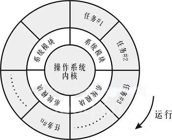 基于這樣的操作系統(tǒng),PCC的應用程序由多任務模塊構成,這樣給項目應用軟件的開發(fā)帶來了了很大的便利,因為這樣可以方便地按控制項目中各部分不同的功能要求,如數據采集,報警,PID調節(jié)運算,通信控制等,分別編制出控制程序模塊(任務),這些模塊既相互獨立運行,而數據間又保持一定的相互關聯(lián),這些模塊經過分步驟的獨立編制和調試完成之后,可一同下載至PCC的CPU中,在多任務操作系統(tǒng)的調度管理下,并行運行,共同實現項目的控制要求,這一特點,可圖示如下: