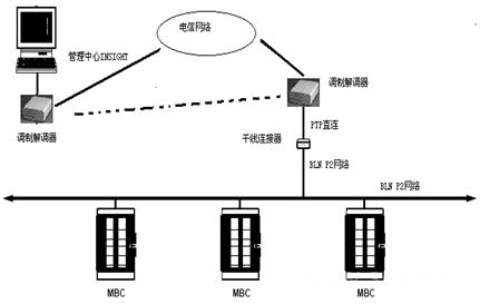 管理中心工作站和干線連接器上都連接調(diào)制解調(diào)器,2個(gè)調(diào)制解調(diào)器撥號(hào)互通之后形成一個(gè)連接通路,INSIGHT即可正常的與現(xiàn)場(chǎng)的BLN總線建立通信。