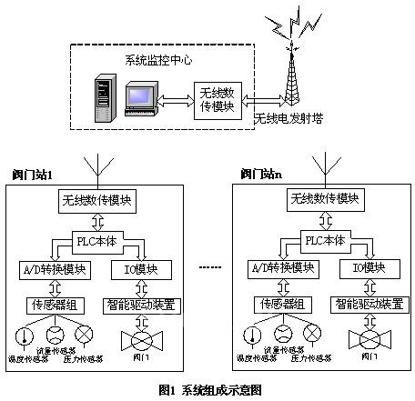 各閥門站采用PLC作為系統(tǒng)的基本RTU單元,完成各種測量和控制任務(wù),主要由PLC本體、AD轉(zhuǎn)換模塊、傳感器組與智能驅(qū)動裝置四部分組成。