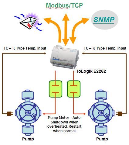為了保證電泵連續(xù)、順暢的工作,油庫(kù)需要一個(gè)分散的監(jiān)控系統(tǒng)用于電機(jī)溫度的監(jiān)控。當(dāng)電機(jī)溫度超過(guò)安全值,前端控制器發(fā)出停機(jī)指令直至溫度冷卻至安全范圍內(nèi)再重新開機(jī)。與此同時(shí),前端控制器發(fā)通知的郵件至監(jiān)控中心及現(xiàn)場(chǎng)所應(yīng)用工程師的藍(lán)牙手機(jī),告知電機(jī)系統(tǒng)何時(shí)關(guān)停。