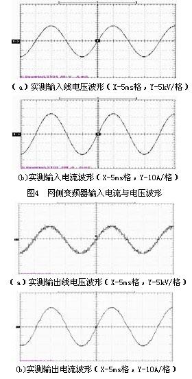 針對鐵煤集團大興礦井主通風機通目前的情況,采用高壓變頻器一臺,一拖一的工作方式,對主通風機同步電機實現(xiàn)無級調(diào)速控制方案。風機電機由高壓變頻器控制,原風門調(diào)節(jié)開度開到最大,風量的調(diào)整通過控制電機轉(zhuǎn)速來實現(xiàn),達到風量的實時精確調(diào)節(jié)。穩(wěn)態(tài)時,變頻器的輸入、輸出波形分別如圖4和圖5所示:
