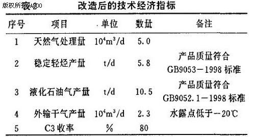 利津輕烴回收改造裝置從2O03年1O月投產(chǎn)運行至今,天然氣處理量、穩(wěn)定輕烴產(chǎn)量、液化石油氣產(chǎn)量都提高了一倍左右。主要技術(shù)經(jīng)濟指標見表2。
