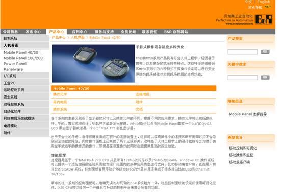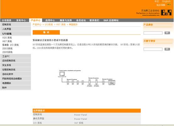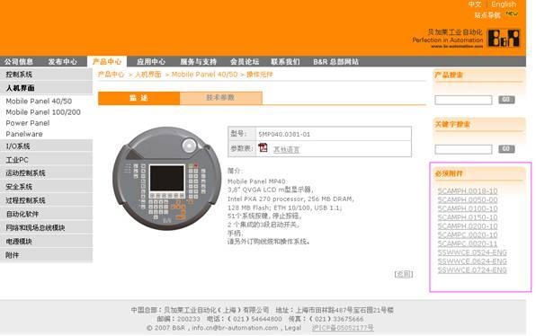 新版欄目秉承了改版前的產(chǎn)品分類:控制系統(tǒng)、人機(jī)界面、I/O系統(tǒng)、工業(yè)PC、運(yùn)動(dòng)控制系統(tǒng)、安全系統(tǒng)、過程控制系統(tǒng)、自動(dòng)化軟件、網(wǎng)絡(luò)和現(xiàn)場(chǎng)總線模塊、電源模塊及附件。在此基礎(chǔ)上,下一級(jí)分類更加細(xì)致,增加了詳細(xì)的技術(shù)參數(shù),并支持產(chǎn)品文檔的下載。為了客戶配置系統(tǒng)的需要,右側(cè)特別安插了必須附件和可選附件,供參考。