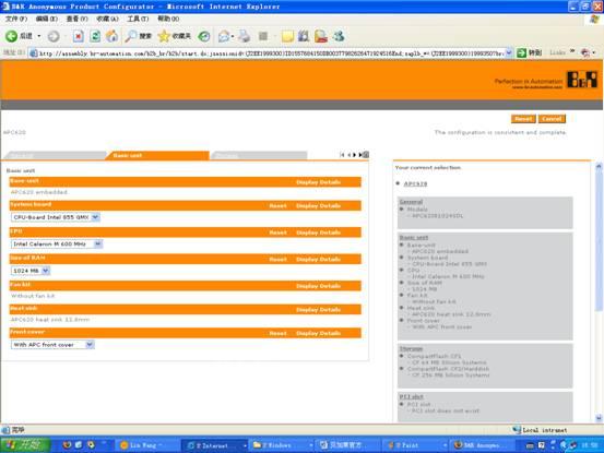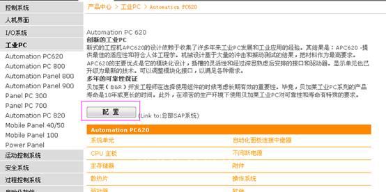 最后,需要一提的是,在工業(yè)PC->APC 620系列中,點(diǎn)擊“配置”,即可通過總部SAP鏈接到APC自選配置工具頁(yè)面,在這里您可以根據(jù)自己的需要來組裝這臺(tái)工業(yè)PC,配置后的信息會(huì)匯總在頁(yè)面的右側(cè),讓您一覽無余。