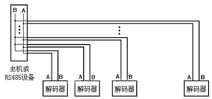 標(biāo)準(zhǔn)的RS485總線須采用T型連接,因而標(biāo)準(zhǔn)的解碼器布線方法如圖3所示。