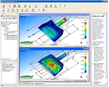 而用于塑料注塑成型分析的Autodesk Moldflow中自帶了一款叫Autodesk Moldflow Communicator的軟件,可以把分析結(jié)果用三維模型、以量化的方式展示出來;這款軟件還提供了一種解釋分析結(jié)果的方式,相當于“看圖說話”的標準答案,這樣不同的設計人員分享這些結(jié)果就變得更加容易。