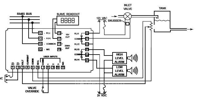PAXD用于調(diào)整箱體液位;帶有高和低箱體液位報(bào)警輸出。RS485通訊用于從遠(yuǎn)程點(diǎn)來監(jiān)視箱體液位。