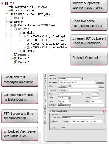 DSP虛擬HMI功能,使操作者無論是在設施的另一端還是地球的另一端都可以遠程監(jiān)測他們的控制過程。內置的Web服務器功能,使操作者可以通過常規(guī)的網頁瀏覽器,借助于互聯網,核查系統(tǒng)運行狀況,確定是否應該去現場解決出現的問題。